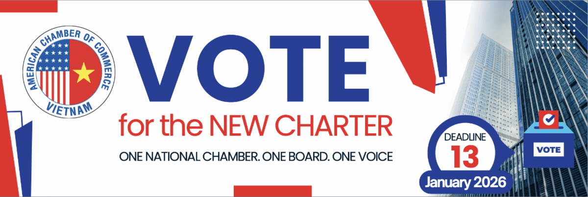 Vote now and make your vote count! We are pleased to share that on December 10th, the Boards of both the Hanoi and Ho Chi Minh City chapters of AmCham Vietnam voted unanimously to approve a new unified Charter — the result of nearly a year of hard work and collaboration — and to present it to the full membership for final approval.